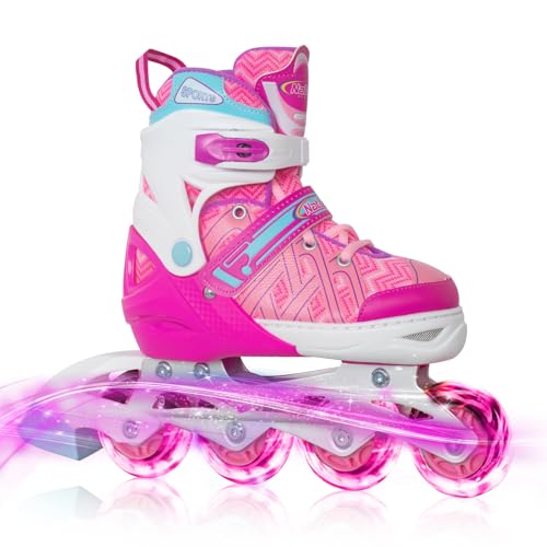 Nattork Adjustable Inline Skates for Little Kids Girls with Light up Wheels - Pink Child Blade Roller Skating for Beginners Size 1 2 3 4 Ages 7 8 9