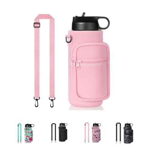 Water Bottle Holder with Strap, 32/40 oz Insulated Bottle Sling Bag Crossbody, Water Bottle Carrier Bag with Phone Pocket and Small Pocket for Walking Hiking Camping Fishing(3.34"W * 7.87"H)