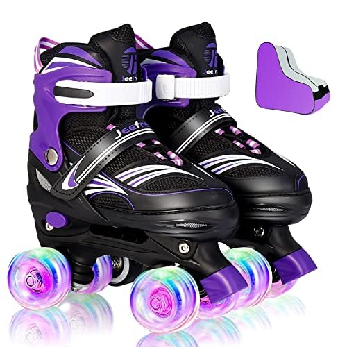 JeeFree Rainbow Unicorn 4 Size Adjustable Light up Roller Skates for Girls Boys for Kids,All 8 Wheels of Girl's Skates Shine,Safe and Fun for Kids
