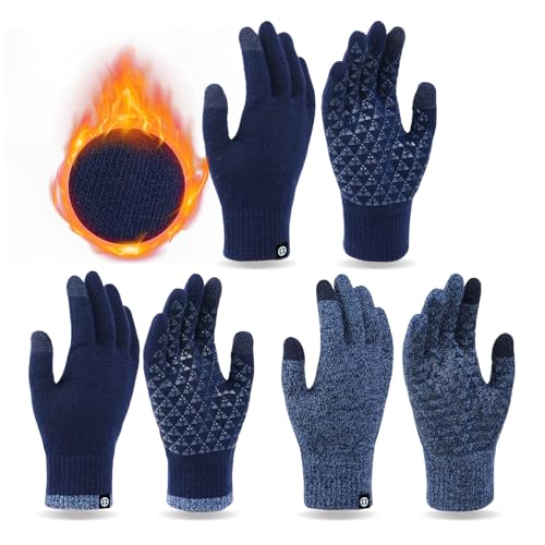 MA COWCF 3 Pairs Winter Gloves for Women Men Touch Screen Elastic Knit Thermal Anti-slip Gloves for Cold Weather(Blue)