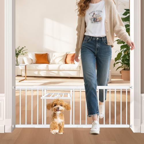 THEYFIRST Extra Wide Dog Gate for Doorways 62.6-72 in, Walk Through Long Baby Gates for Large Openings, No Drill Child Safety Gate for Pets Kids Toddler, Doggy Barrier Indoor Metal, 30" Tall White