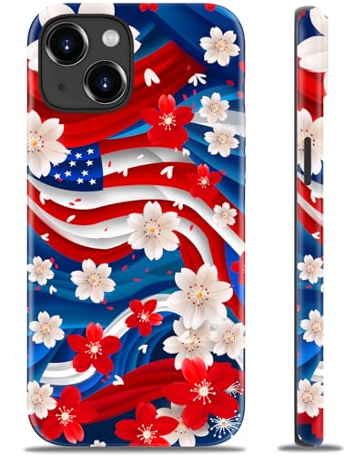 LUXMERRY for iPhone 15 Case Cute - Wireless Charging Compatible - Dual-Layer Hard Shell + Silicone Cover - Protective Phone Case Aesthetic Trendy Designs for Women - American Flag Flower