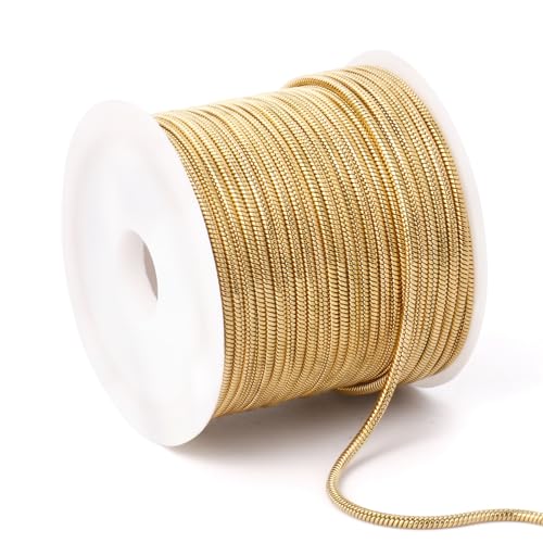 33 Feet Gold Snake Chains Roll, 1.5mm 18K Gold PVD Plated 304 Stainless Steel Round Snake Chain Bulk Spool for Jewelry Making DIY Craft
