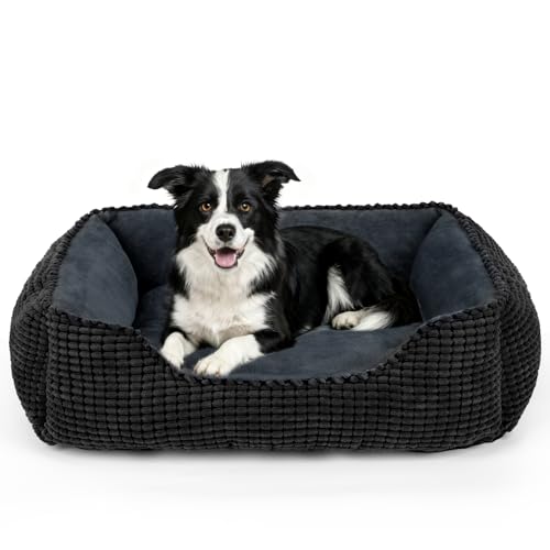 MIXJOY Large Dog Bed for Large Medium Small Dogs, Rectangle Washable Orthopedic Dog Bed, Soft Calming Sleeping Puppy Bed Durable Pet Cuddler with Anti-Slip Bottom L(30"x24"x9")