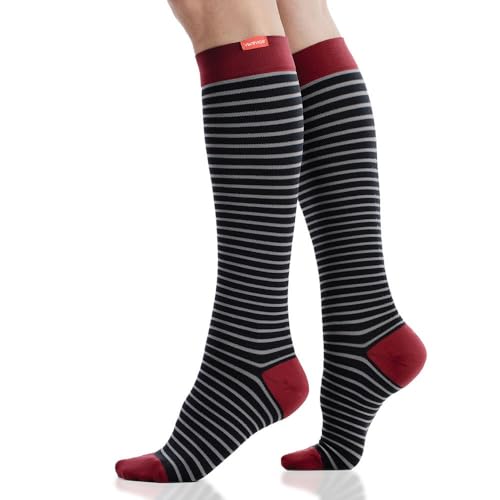 VIM & VIGR 30-40 mmHg Medical Grade Compression Socks for Women & Men (Black & Grey Little Stripe Nylon, Medium/Large (2))