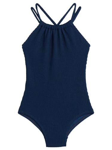 Kanu Surf Girls, Jasmine Beach Sport Halter One Piece Swimsuit, Popcorn Solid Navy, 8