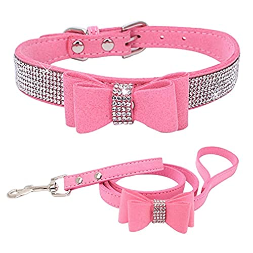 Rhinestone Bowtie Dog Collar for Girls Boys,Cute Dazzling Sparkling Soft Suede Leather Pretty Bling Cat Collars Crystal Diamond Pet for Small Medium Large Puppy Kitty Female Male