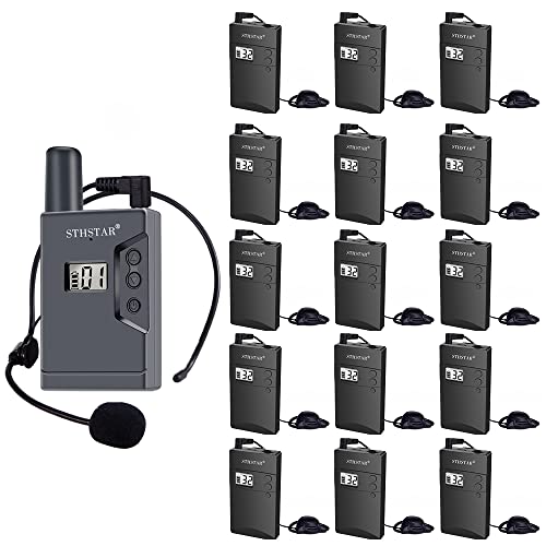 Wireless Tour Guide System, Case with 1 Transmitter and 15 Receivers Headsets 32 Channels Transmitter Receiver for Church, Travel, Conference, Museum, Social Distancing, Translation Use (Dark Grey)