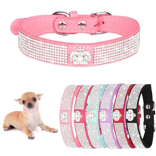 Small Dog Collar for Female Dogs,Crown Bling Puppy Collars Girls Cute Rhinestone Dazzling Sparkling Pretty Bling Crystal Diamond for XXS XS Small Medium Large Pet Cats,Pink S