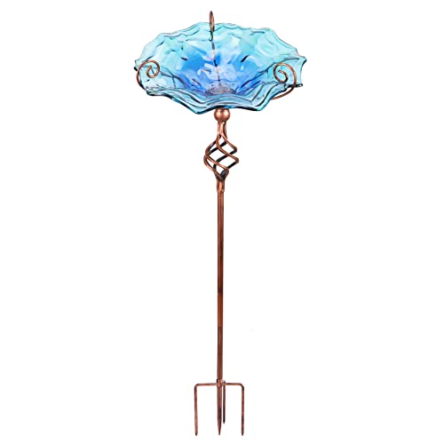VCUTEKA Outdoor Bird Bath Glass Birdbath Garden Bird Feeder with Metal Stake Blue