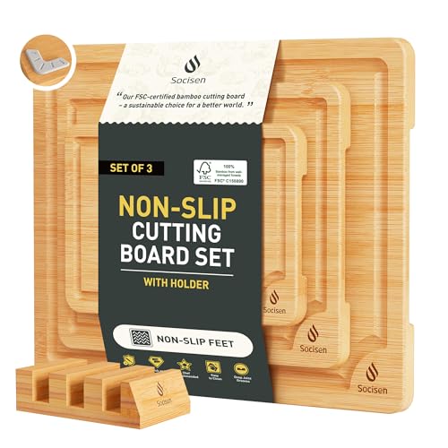 Bamboo Cutting Board Set Non Slip Feet with Holder Over Sink Wooden Cutting Boards Eating Grilling Biard Cutboard Biard Chtting Woodcutting Cuttingboards Voard Oard Bord 12x18 11 x 14 Baords Baord