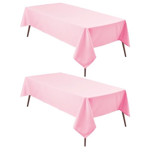 Hiasan 2 Pieces Pink Tablecloth Rectangle - Washable Waterproof Fabric Oblong Table Cloth for Card Tables, Party and Dining, 54 x 80 Inch