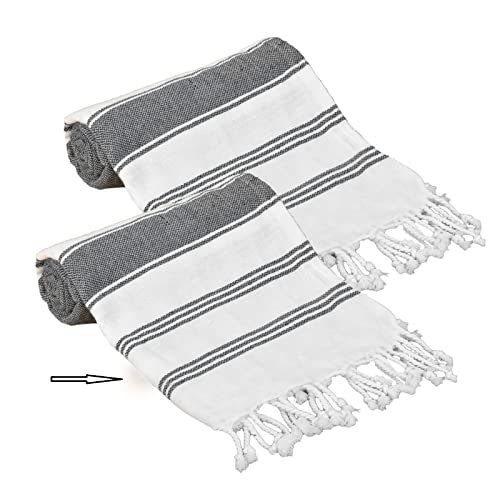 GLAMBURG Peshtemal Turkish Towel - Beach Towels Oversized 36x71 Set of 2, Cotton Beach Towels for Adults, Soft Durable Absorbent Extra Large Bath Sheet Hammam Towel - Black