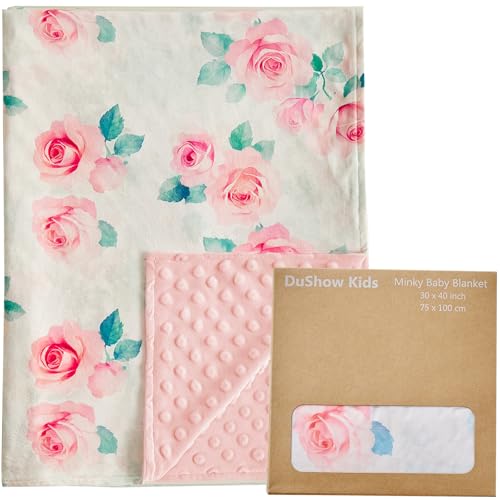 DuShow Floral Baby Blanket for Girls - Ultra Soft Double Layer Minky Blanket with Dotted Backing, Lightweight Receiving Swaddle for Newborns & Toddlers, Nursery, Stroller, Carseat-30x40 Inches