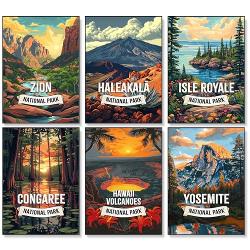 6 Pack National Park Paint by Numbers Kit for Adults Beginner 10x14 Inch, Landscape Adult Paint by Number Kits on Canvas Without Frame, DIY Acrylic Painting by Numbers for Home Wall Decor Gift