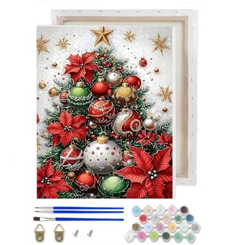 VIGEGU Christmas Paint by Numbers Kit for Adults Beginner with Frame,Christmas Tree Bells Paint by Number DIY Adult Paint by Number Kits for Home Decor 9x12 in