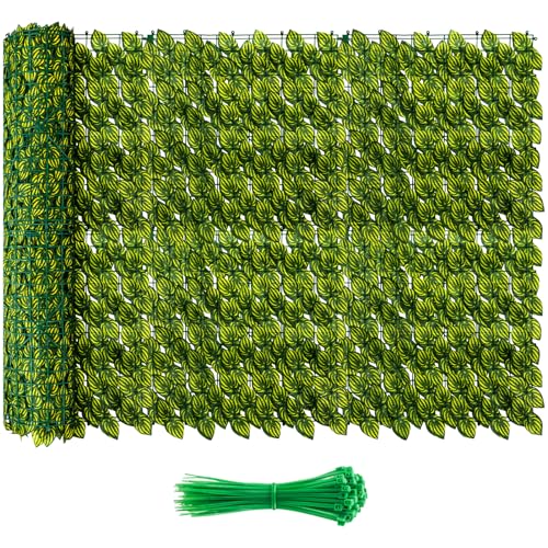 KASZOO Artificial Ivy Privacy Fence Screen - 120''(L) x 40''(W) Faux Greenery Wall Panels for Outdoor Privacy, Balcony, Patio, Backdrop, Fence Decor,Realistic Green Leaves for Wall or Garden Use