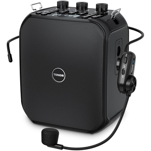 TONOR 6000mAh Rechargeable Voice Amplifier 50W, Bluetooth Personal PA System with Wireless Headset Mic & Waistband, Portable Megaphone Speaker for Classroom, Training, Teaching, Speech, Tour Guide K13