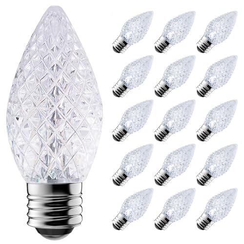 AJONIAM C7 Led Replacement Christmas Light Bulbs, 50-Pack C7 Shatterproof Led Bulbs with E12 Candelabra Base for Christmas String Lights, Waterproof & Dimmable Christmas Village Bulbs - Cool White