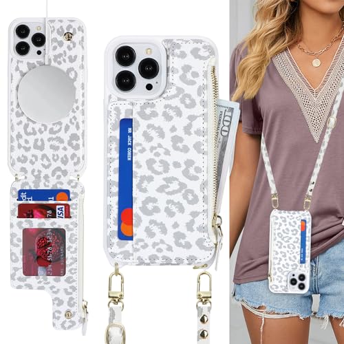 Cavor for iPhone 11 Pro Max Case Wallet with Card Holder for Women,Compatible with Magsafe, for iPhone 11 Pro Max Crossbody Phone Case with Strap-Leopard White