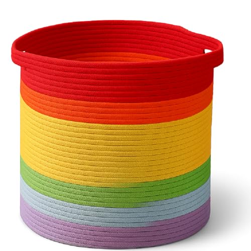 Nonazippy laundry hamper 16x16x18,60L – large basket for blankets, toy basket,Cotton Rope Blanket Basket Living Room, Baby Laundry hamper for Blanket, Nursery, –stuffed animal storage( Rainbow color)
