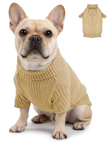 Dog Sweaters for Small Medium Large Dog, Classic Turtleneck Pet Clothes Warm Thermal Doggy Winter Coat, Thick Double Knitting Collar Pullover Cold Weather Puppy Jacket(Khaki,XL)