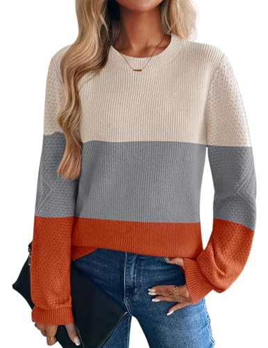 Zeagoo Womens 2026 Fall Sweaters Lightweight Long Sleeve Ribbed Knit Crewneck Pullover Tops Crochet Casual Outfits White Gray Orange XX-Large