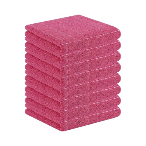 Homaxy 100% Cotton Terry Kitchen Towels(Rose Red, 13 x 28 inches), Checkered Designed, Soft and Super Absorbent Dish Towels, 8 Pack