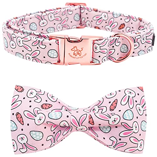 Elegant little tail Easter Dog Collar, Dog Collar with Bowtie, Bunny Carrots Cute Pink Pet Bow Dog Collars Adjustable Puppy Collar for Medium Dogs