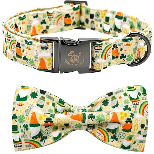 Elegant Little Tail St. Patrick's Day Green Clover Dog Collar with Bow, Large, Cotton, Buckle, Adult, Large Breed