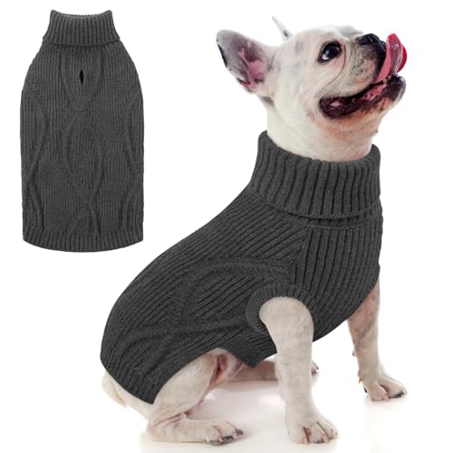 PUZAUKAL Dog Sweater Pullover, Cable Knit Dog Christmas Sweater, Dogs Sweaters for Small Medium Large Dogs with Harness Hole,Puppy Sweaters Boy Or Girl(Grey,L)