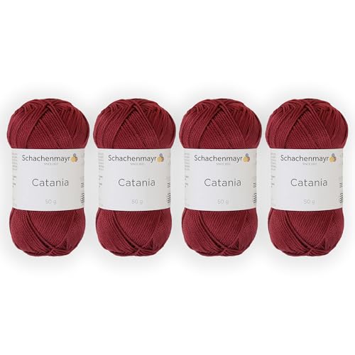 4 Skein/Pack Schachenmayr (SMC) Catania Originals Yarn, Each Ball 1.76 Oz (50gr) / 136 Yards (125 m), 100% Mercerized Cotton for Knitting and Crochet Yarn, Sport Weight, 425 - Burgundy