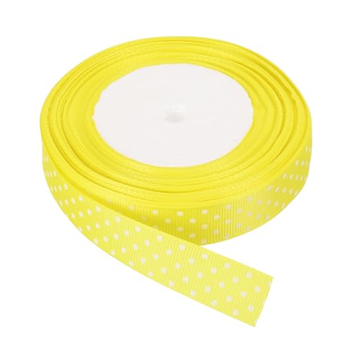 MECCANIXITY Grosgrain Ribbons 25 Yards 3/4 Inch Lemon Yellow with White Dots Ribbon Bow Decoration for Crafts Gift Wrapping Wedding DIY Handmade