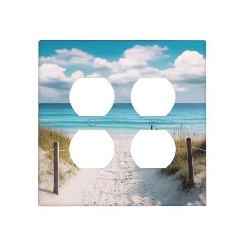 OILbiexn Outlet Covers Beach Blue Sea Seascape Shoreside Seaside 2 Gang Duplex Decorative Light Switch Cover Double Wall Plates Switch Plates Electrical Socket Covers for Bathroom Bedroom Decor