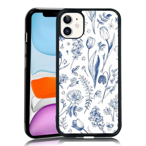 MMYAJT Beautiful Blue Flowers and Leaves Phone Case Fit for iPhone 11— Shockproof Designed Cute Aesthetic Phone Case Cover for Boy Girl Men Women