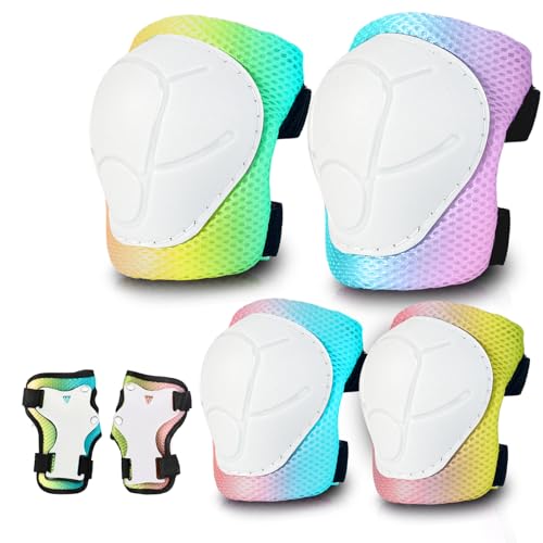 Gradient Color Kids Protective Gear Set Knee Pads for Kid 2-14 Years,W/ Adjustable Strap Kids/Youth Knee Pads Elbow Pads Wrist Guards Set for Inline Roller Skates,Cycling,BMX Bike,Skateboard,Scooter