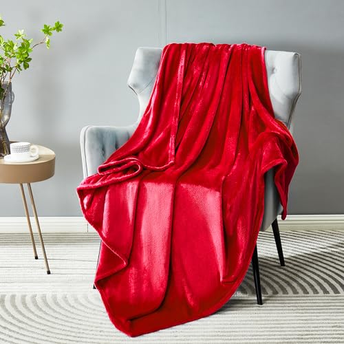 DREAMNINE Extra Soft Fuzzy Fleece Throw Blanket for Couch Sofa Chair 50" x 60", Decorative Solid Lightweight Fluffy Velvet Blankets,Cozy Accent Shaggy Plush Warm Flannel Blanket for Winter Bedroom,Red