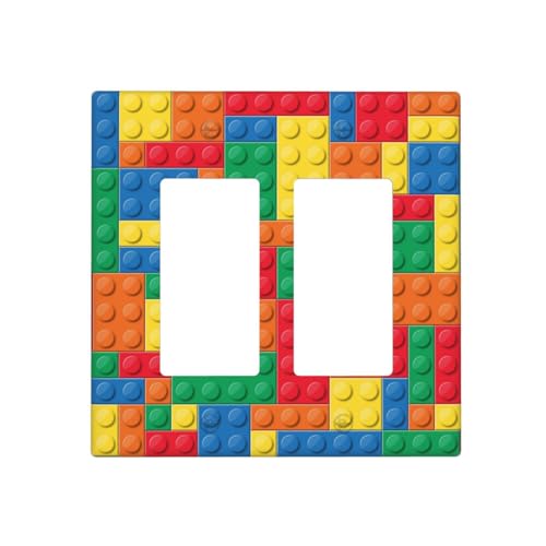 Colorful Bricks 2 Gang Wall Plate Decorative Light Switch Plate Cover, Double Switch Plate Covers Room Decor