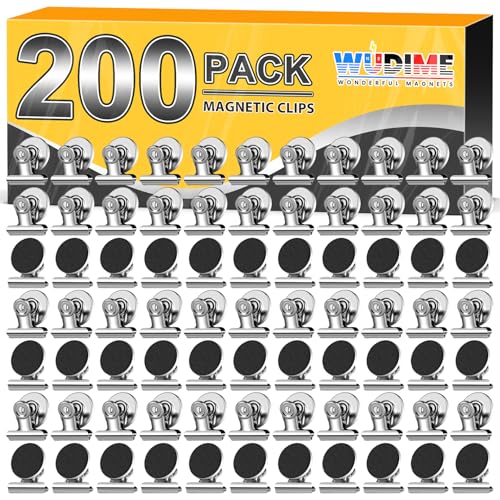 WUDIME 200 Pack Strong Magnetic Clips, Fridge Magnets Refrigerator Magnets, Clip Magnets for Whiteboard, Magnet Clips for List Display Paper Fasteners on Home Office Teaching (Silver)