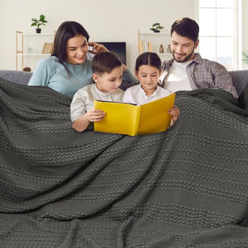 PHF 100% Cotton Waffle Blanket Oversized King 120"x120", Lightweight Breathable Extra Large 10'x10' Blankets for Bed, Giant Big Luxury Aesthetic Woven Bedding for Home Decor, Charcoal Grey