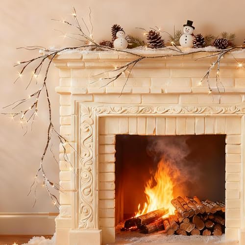 Fudios Christmas Garland Lights Snow Flocked 6FT 48 LED Battery Operated for Winter Decor, Lighted Snowy Garland Vine Home Holiday Party Mantle Indoor Outdoor Use