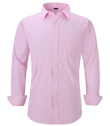 corfty Long Sleeve Dress Shirts for Men - Regular-Fit Casual Button-Down Shirt with Pockets (Small, Pink)