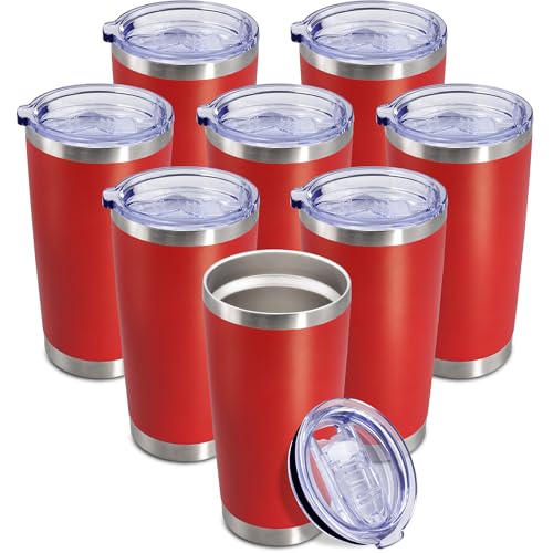 20 oz Tumbler Coffee Travel Tumblers Bulk with Lid Stainless Steel Double Wall Vacuum Insulated Mug Powder Coated Cups fit Car Cupholder for Hot and Cold - Red, 8Pack
