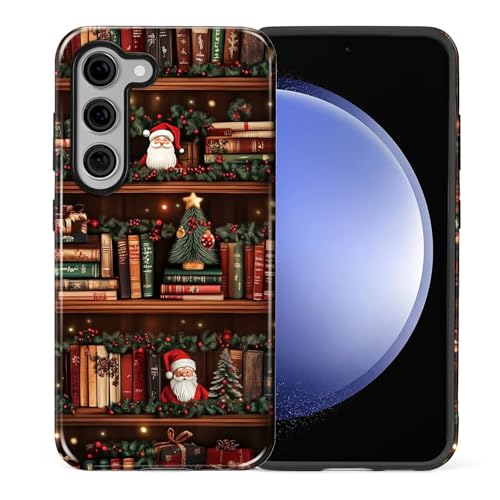 TAMEFOX Case for Samsung Galaxy S23 Plus,Anti Drop Scratch Frosted Protective Cover Case for Women Girl-Santa Christmas Tree Bookshelf