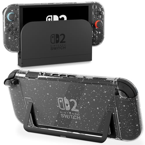 Clear Glitter Dockable Case for Nintendo Switch 2 Skins, FUNDIARY Protective Hard PC Transparent Case Protector for Switch 2 Slim Cover Shell Grips Controller Accessories - Easy Dockable Version