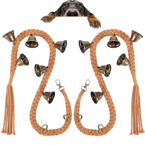 2 Pack Dog Bells for Door Potty Training, Handwoven Cotton Rope Dog Doorbell with 6 Extra Loud Bells, Adjustable Dog Door Bells for Small Medium Large Dogs to Ring to Go Outside, Brown