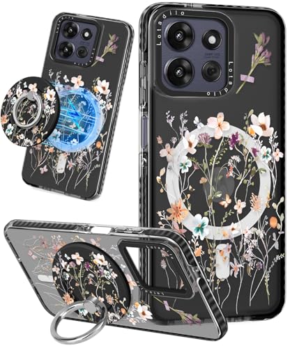 Lotadilo Cute Case for Moto G Power/Play 5G 2025 for Women Girls - Funny Dried Flower Design Compatible with Magsafe Ring Holder Magnetic Stand Kickstand Fashion TPU Phone Covers Kawaii