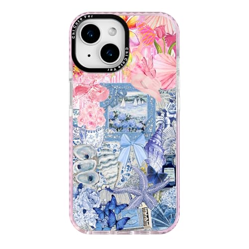 ChiCaseVer for iPhone 15 Plus Case, Coastal Vintage Collage Pattern, Military-Grade Drop Protection, Vintage Seaside Soft Slim TPU Protective Cover with Camera Protection for Girls