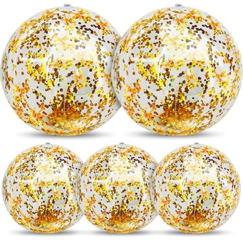 5 Pcs Inflatable Beach Balls, 16 Inch & 24 Inch Large Confetti Glitter Beach Balls, Sequins Clear Blow up Pool Balls Toys for Christmas Party Decorations 2026 New Year Birthday Summer Swimming Pool