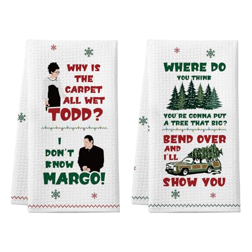 Christmas Vacation Decorations, 2 Pack Funny Holiday Kitchen Towels, Griswold Family Cousin Eddie Christmas Vacation Merch Gift, Holiday Bathroom Decor Hand Towels, Novelty Xmas White Elephant Gifts
